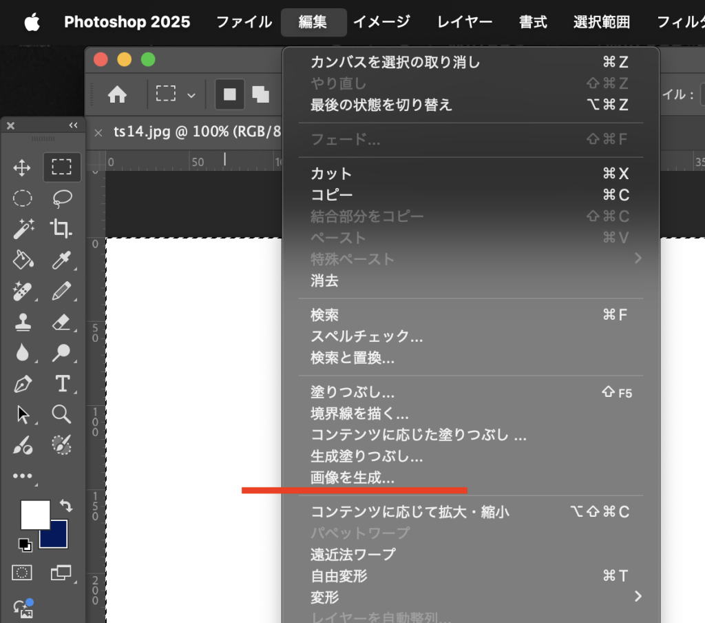 編集メニュー→画像を生成…を選択